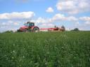 Sečení bylo provedeno traktorem Massey Ferguson 7480 Dyna VT starší verze o výkonu kolem 150 koní a taženým žacím mačkačem Kuhn FC 353 RGC. Spotřeba se pohybovala kolem 4l/ha. Obsluha stroje měla nastavený tempomat na 24 km/h při sečení a při otáčení na souvrati na 9,5 km/h. Pracovní záběr žacího mačkače byl 3,5 m, při takové rychlosti práce ubývala. Nevěřil jsem, že až takhle rychle a s kvalitou lze provádět sečení pícnin. Na závěr bych řidiči traktoru poděkoval za svezení a za spolupráci při focení.