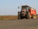 V sezóne 2014 sa mi podarilo pár krát sa zastaviť pri prácach Holandskej firmy Záhorie Farms s.r.o.. Tieto práce sa týkali okrem iného aj desikácie a vyorávania zemiakov.Táto firma okrem zemiakov, ktoré sa pestujú hlavne na výrobu hranoliek sa venuje ešte pestovaniu kukurice, pšenice, jačmeňa, hrachu, repky olej., sóje, čierneho korenia atď. Pri fotení som sa na zhruba 60 hektárovom poli stretol so súpravou New Holland T6070 + postrekovač Kverneland Rau Xtrack c50, ktorý prišiel z Malých Levár (70km) vykonať desikáciu zemiakov prípravkom Reglone. Dalej sa už samotnej vyorávke venoval samochodný dvojriadkový vyoravač AVR Mistral. Pohon tejto mašiny má na starosti motor Deutz Fahr 400 BHP. Cestná rýchlosť vyorávača je 30 km/h. Spotreba pri optimálnych podmienkach je cca 30 l/hod pri rýchlosti 4-6 km/h. Denný výkon za dobrých podmienok je 6 ha. Odvoz tvorili traktore New Holland TS 115 so starším dvojosím návesom NL/140-14T, NewHolland G 170 s novozakúpeným návesom NL/160, Claas Arion 640 s novozakúpeným návesom NL/160. Starší náves je do max 14 ton a novšie návesy do 16 ton nákladu. Vyorané zemiaky sa vozili na stredisko, vzdialené cca 5 km od poľa, kde sa čistili a nakladali na kamióny alebo sa naskladnovali do haly, odkial boli podla potreby postupne prevážané na miesto ďalšieho spracovania... Ďakujem kolegovi SIKU za pomoc a info.