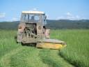 Německý traktor Fortschritt ZT 303 C se shrnovačem SB-4 při shrnování senáže v Tatenicích.